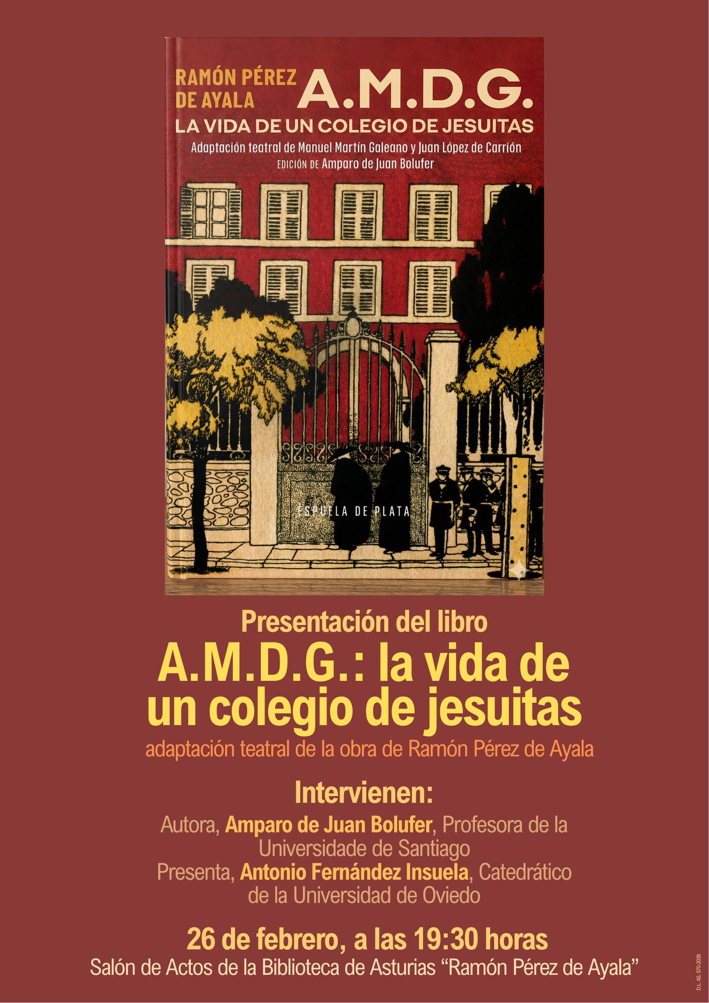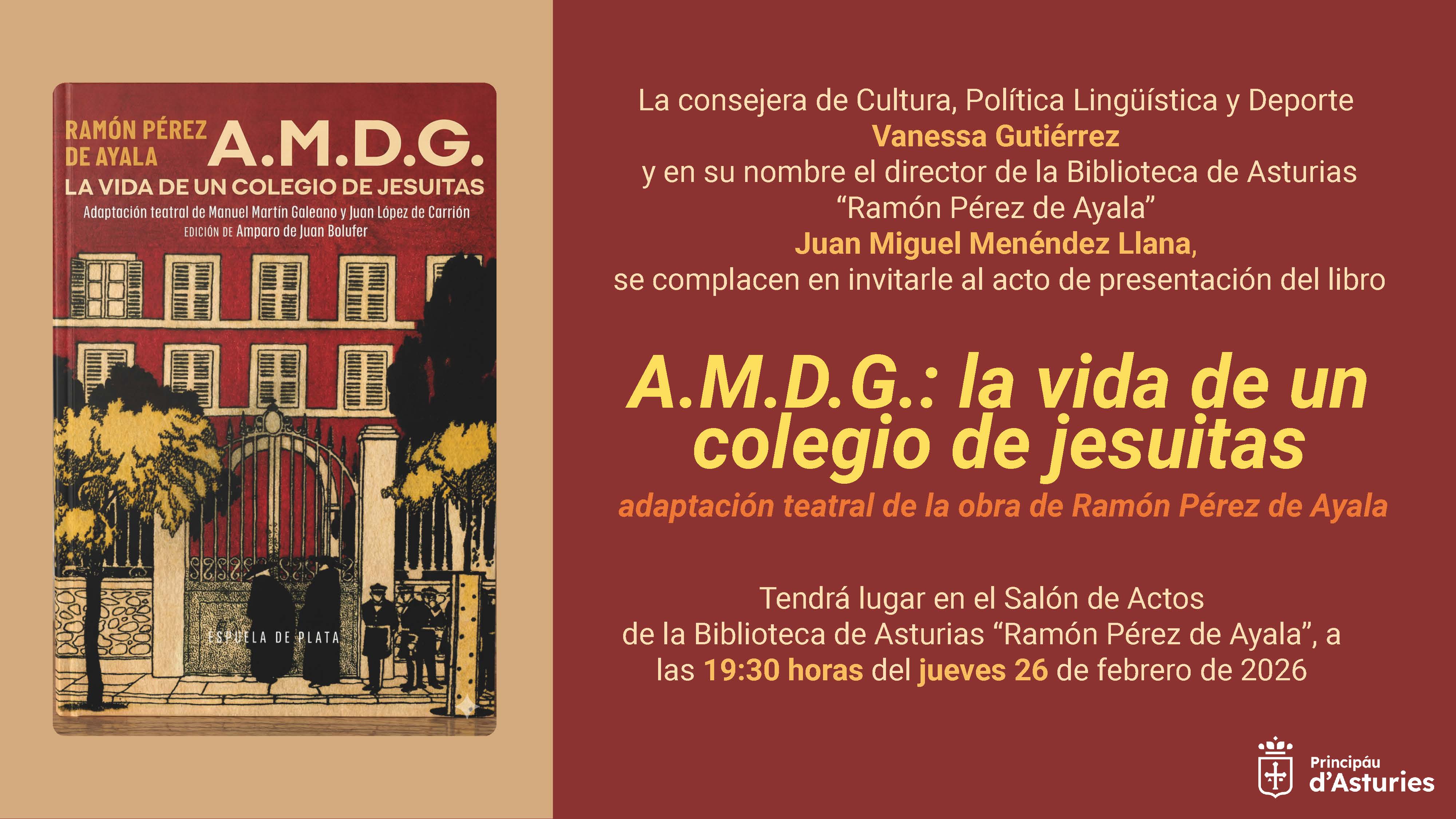 Os invitamos a la presentación de A.M.D.G. La vida de un colegio de jesuitas, adaptación teatral de Manuel Martín Galeano y Juan López de Carrión sobre la célebre novela A.M.D.G. de Ramón Pérez de Ayala.