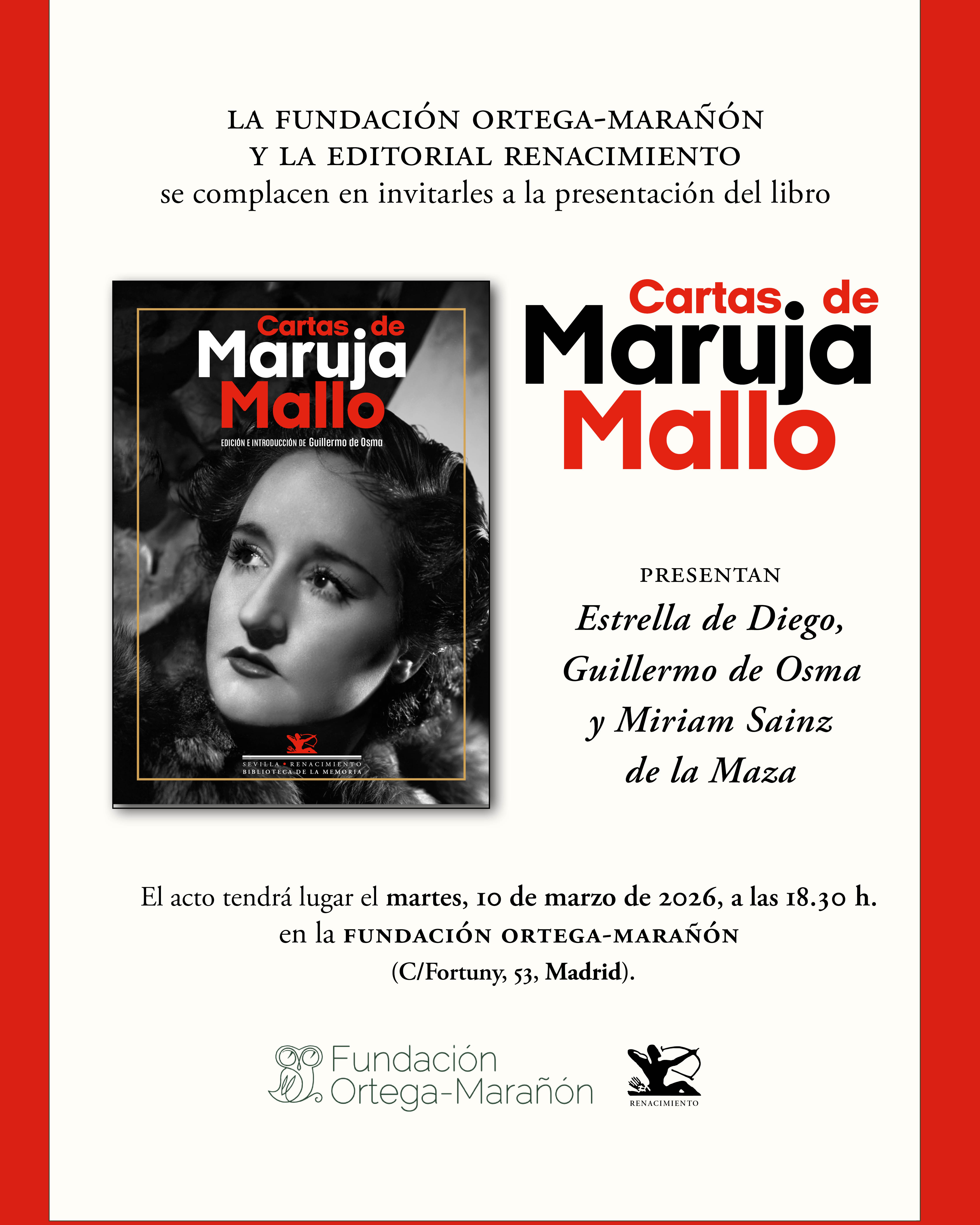 El acto tendrá lugar el martes 10 de marzo de 2026, a las 18:30 h, en la Fundación Ortega-Marañón (C/ Fortuny, 53, Madrid). Intervendrán Estrella de Diego, Guillermo de Osma y Miriam Sainz de la Maza.