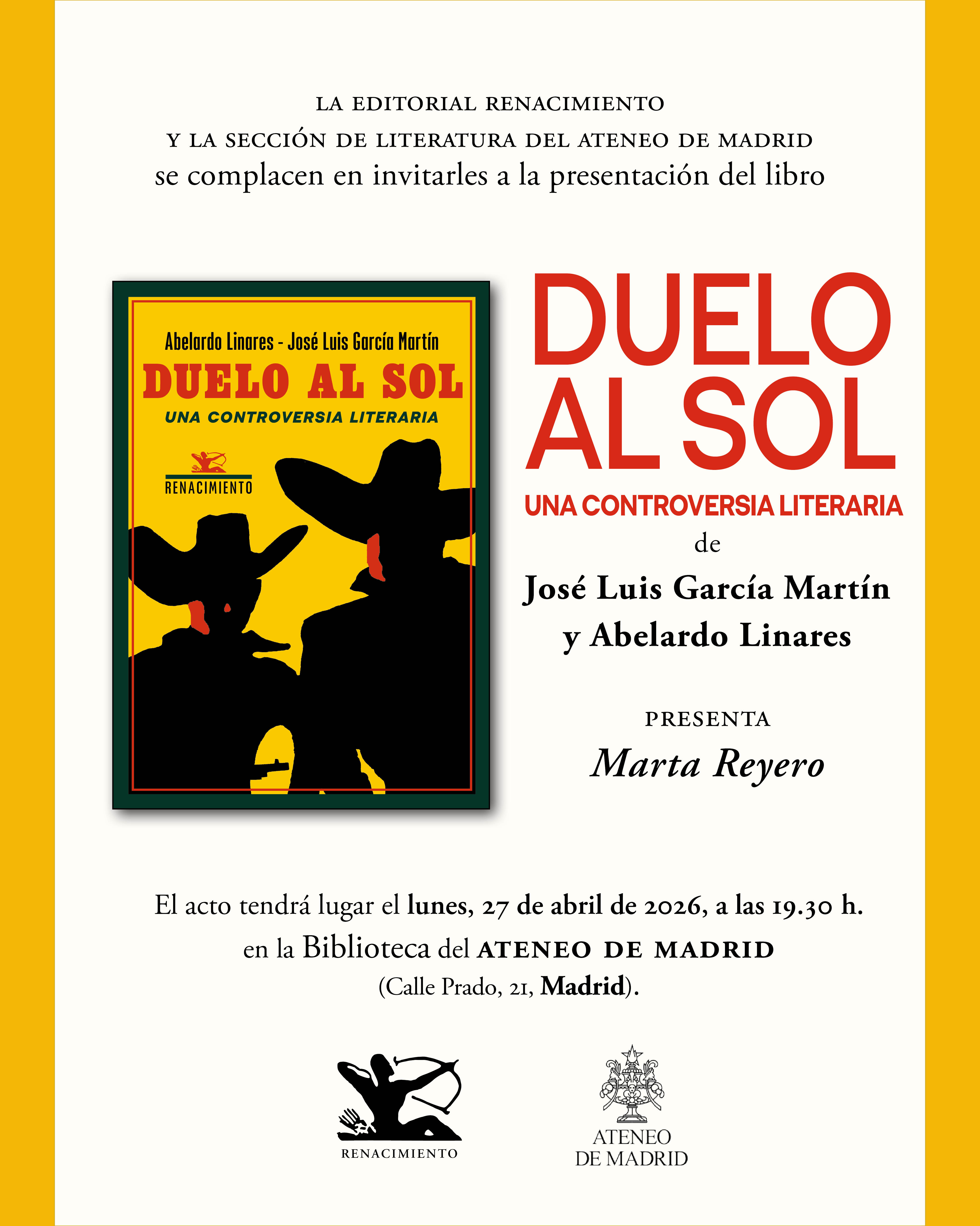 La Editorial Renacimiento y la Sección de Literatura del Ateneo de Madrid se complacen en invitarles a la presentación del libro Duelo al sol. Una controversia literaria, de José Luis García Martín y Abelardo Linares.