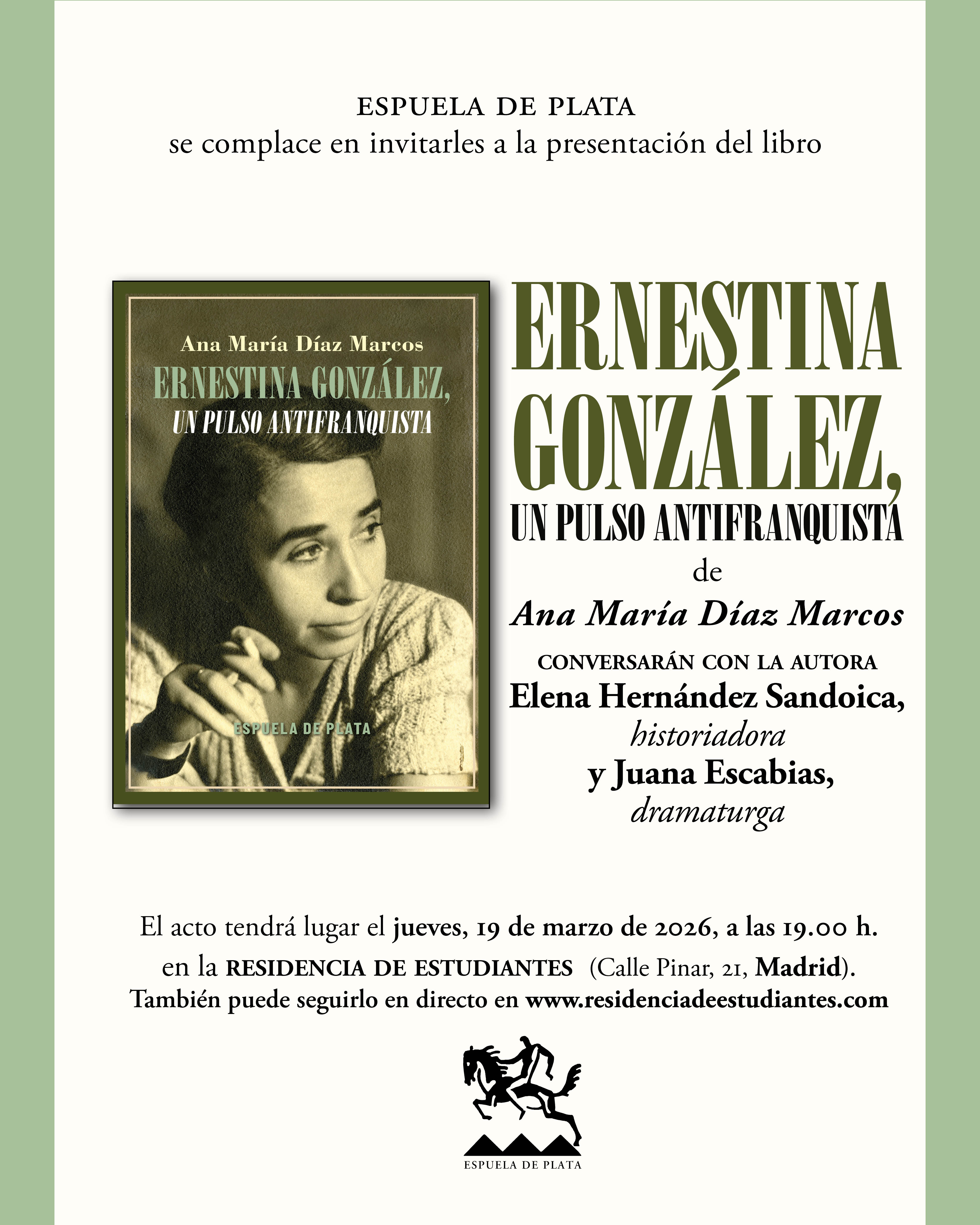 Espuela de Plata y la Residencia de Estudiantes invitan a la presentación del libro Ernestina González, un pulso antifranquista, de Ana María Díaz Marcos.