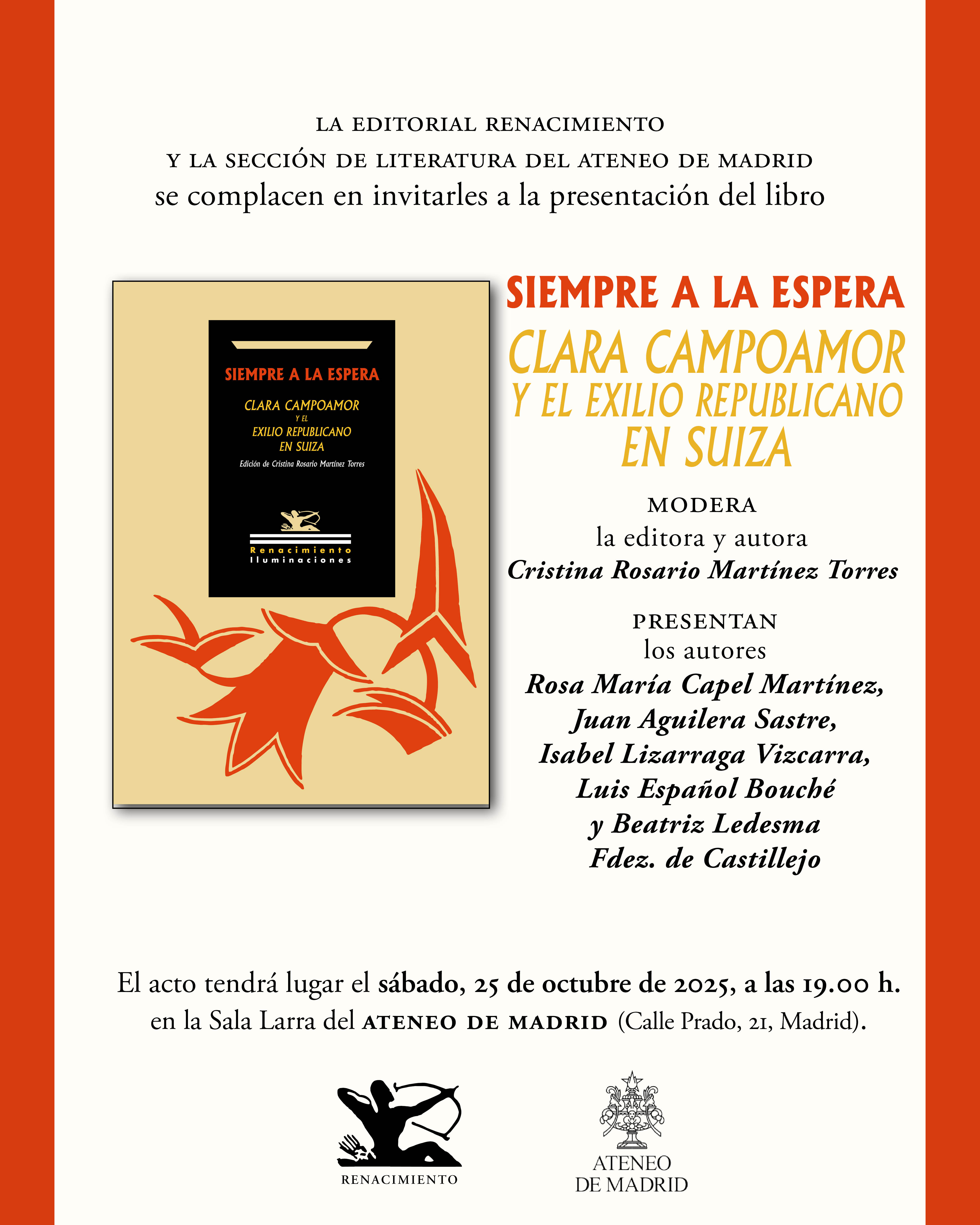 Os invitamos a la presentación en Madrid de Siempre a la espera. Clara Campoamor y el exilio republicano en Suiza, con edición de Cristina Martínez Torres: Un conjunto de estudios para redescubrir a la gran sufragista española en el corazón de su destierro.